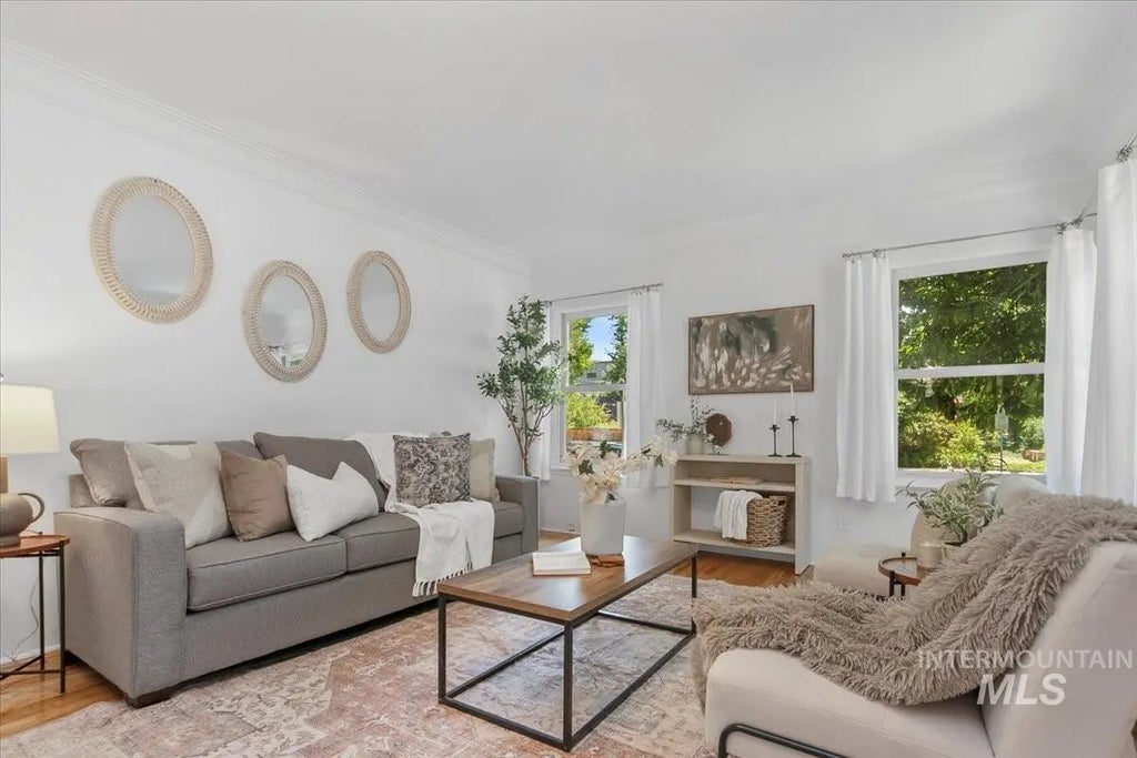 North End Duplex Investment! Updated 1940s residence with fully finished basement apartment featuring private entrance, kitchen, and separate utility meters—ideal for rental income, guests, or multigenerational living. Main home offers original hardwood floors, 3 additional bedrooms, an extra bathroom, newer windows, Trex decking, and electric gate. Detached 2-car garage, 12x18 wood shed, and abundant off-street parking add value. Outdoor spaces include cobblestone entry, deck, and fire pit. Prime location: walk to downtown Boise, less than 1 mile to Hyde Park, minutes to foothill trails, and quick freeway access. Investor Note: Similar North End rentals in this area are generating ~$1,300–$1,500/month for basement units and ~$2,800–$3,200/month for main homes. Strong potential for house hacking, long-term or short-term rental income.